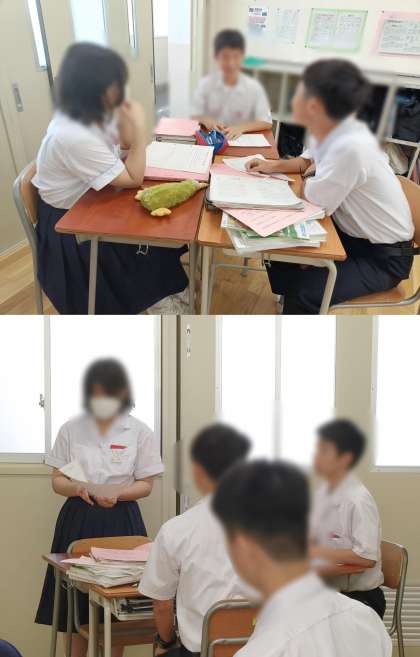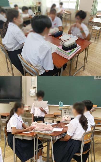 夏休みの宿題で各自考えてきた『短歌』を班で発表し、班の代表がクラスの前で発表しました。