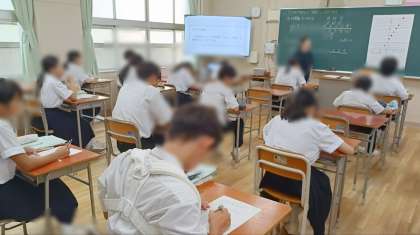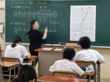 1次関数のグラフの特徴や「切片」「傾き」について学習しています。