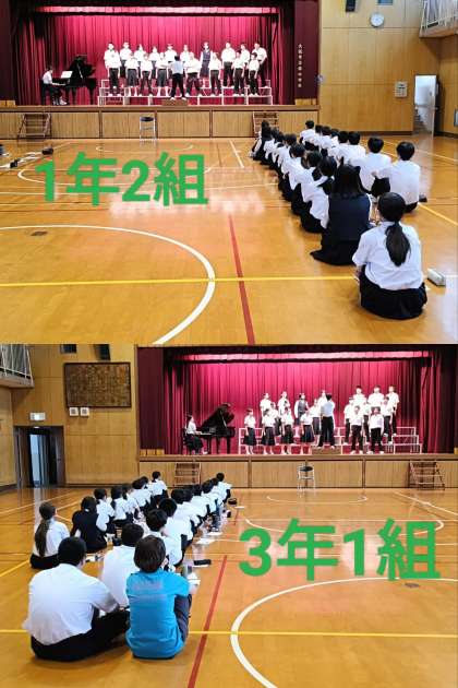 5時間目は異学年で合唱を聞き合って採点とアドバイスをしあいました。