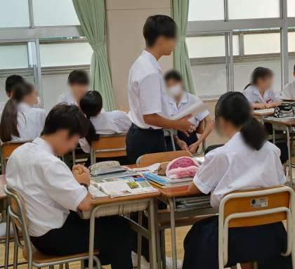 1時間目、2年1組は社会です。