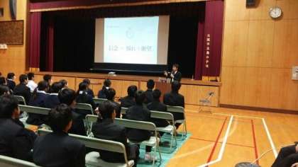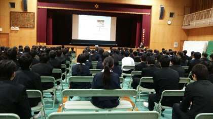 金蘭会高等学校特任講師 株式会社グローバルキャリア代表取締役 的場 亮さんをお招きして『夢をかなえるためのコツ8〜夢は逃げない!逃げるのは自分〜』というテーマで講演をお聞きしました。浅田真央さんの映像等を使いながらの感動的な話で、多くの生徒・先生が感動の涙を流していました。