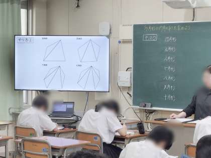 多角形の内角の和の求め方を学習しています。