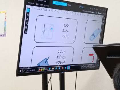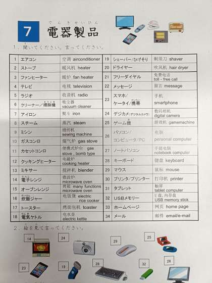 ひらがなやカタカナはほとんど読めるようで、今日は、電器製品の名前を覚えました。