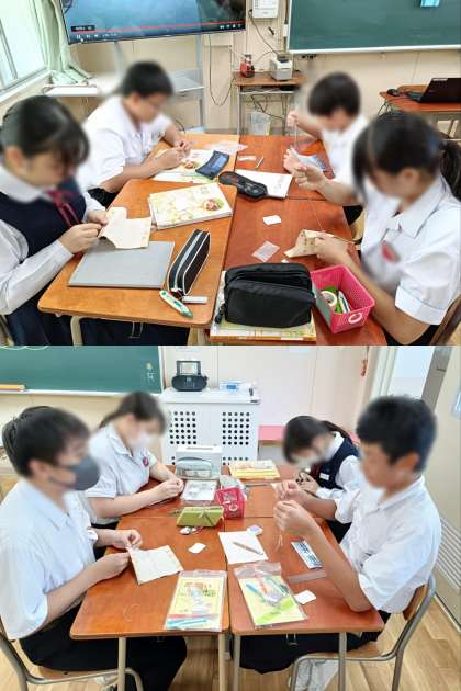 3時間目、2年1組は家庭科です。