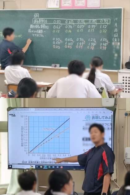 『金属の質量と加熱後の酸化物の質量の関係』について学習しています。