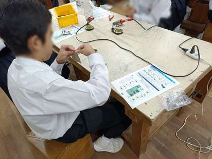 ハンダ付けの前に、基盤を先生にチェックしてもらい、オッケーが出たらハンダ付けです。