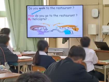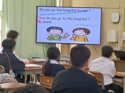 5時間目、1年2組は英語です。