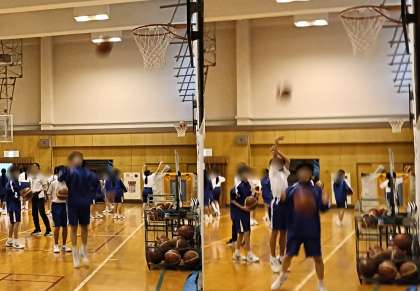 男女一緒にバスケットボールです。