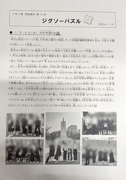 『2年2組 学級通信 第14号ジグソーパズル2024.11.15』