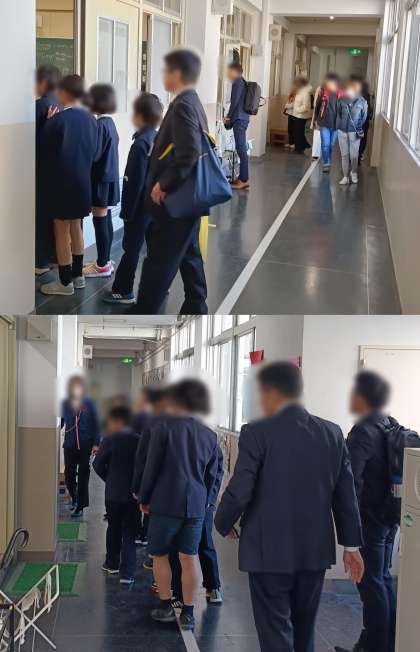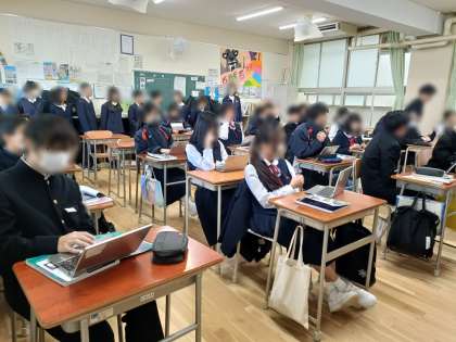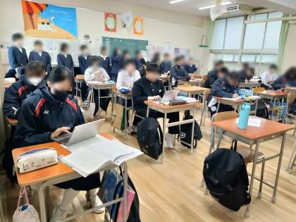 5時間目、南小学校と高津小学校の6年生が授業見学に来てくれました。