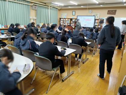 5時間目、3年生は公立高校の出願等についての説明を聞いています。