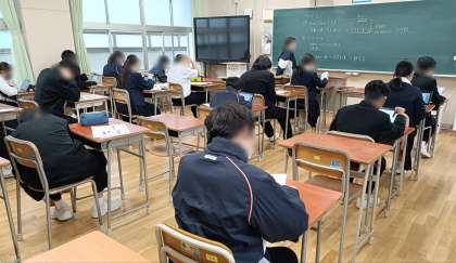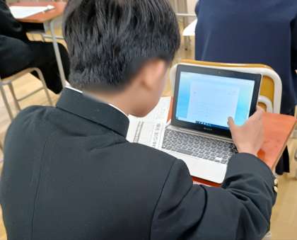 6時間目、2年生はチャレンジテストの学習状況などのアンケートと、また、別のスマホ使用に関するアンケートに回答しています。