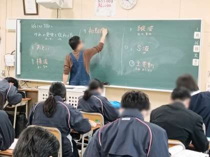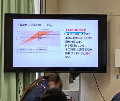 地震について学習しています。昨日、宮崎県で震度5弱を観測する地震があったところなので、実際の地震と関連づけながら進めています。