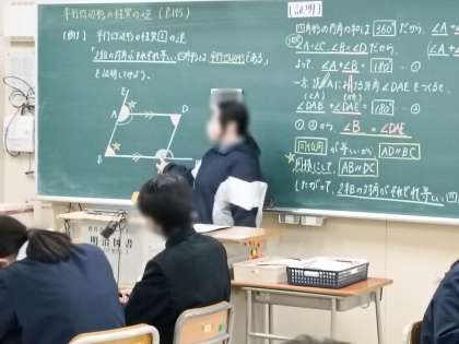 今日は、「平行四辺形の性質の逆」について学習しています。