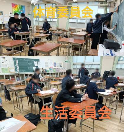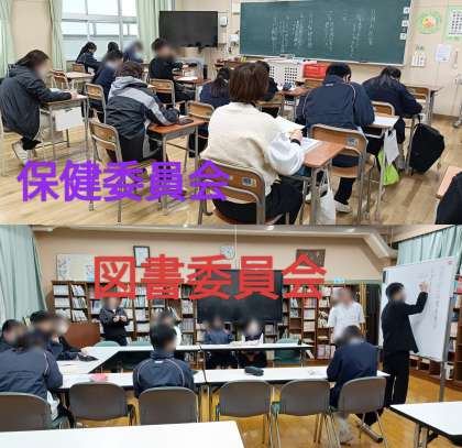 体育委員会、生活委員会、保健委員会、図書委員会の様子です。