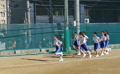 今日は、男子1500m走、女子1000m走のタイムを計測しています。