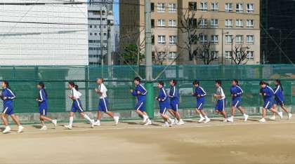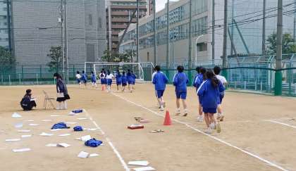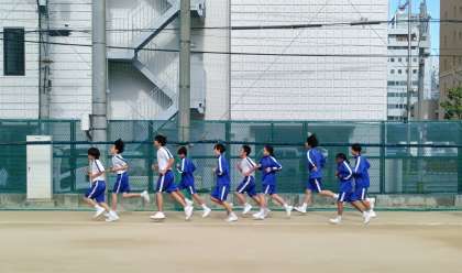 自分のペースにあったグループに入り、各グループの先頭の生徒がペースをキープして走ります。