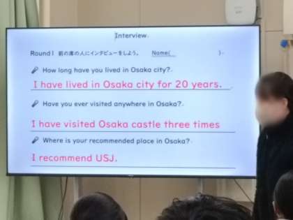 様々な例文を学習した後、ペアでインタビュータイムです。