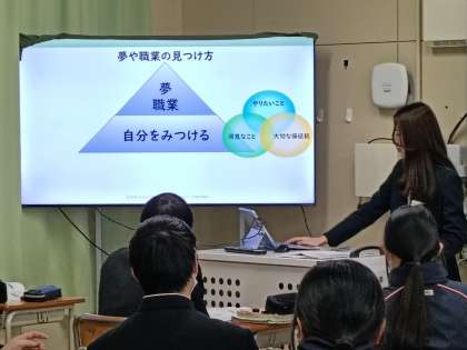 3,4時間目、3年生は、外部から講師をお招きし、「金融教育」に取り組んでいます。