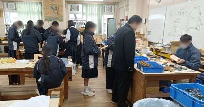 手間取っている生徒を他の生徒が手伝っている姿もあります。