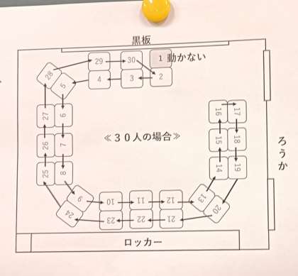 全員と話ができるように、1分ごとに、場所をかわっています。