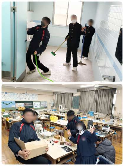 受検しない生徒は朝から登校して、1時間目、校舎内の色々な場所の清掃活動をしてくれています。