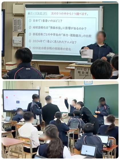 を班ごとにテーマを決めて、パソコンを使って調べてまとめていきます。