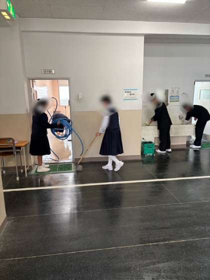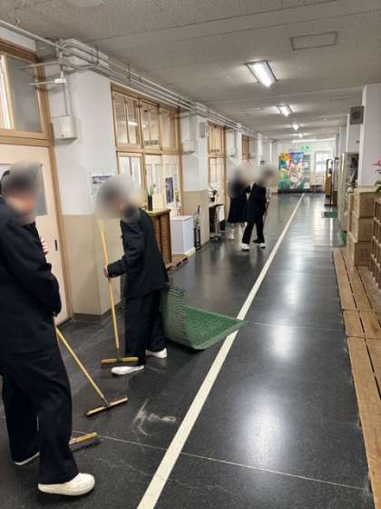 授業後は、みんなで校内を、きれいに清掃します。丁寧に清掃してくれたので、床も光ってます。