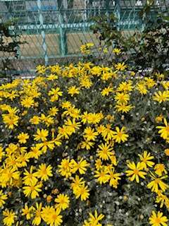グランドにきれいに花が咲いてます。