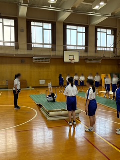 動画で自分の動きを確認したり、マットに傾斜をつけたりするなど工夫しながら練習してます。
