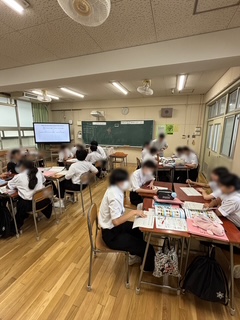 互いに質問し合いながら、和気あいあいと、楽しそうに英語を学んでいます。