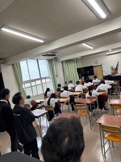 1組は、音楽の授業。ギターで「大きな古時計」を引きました。