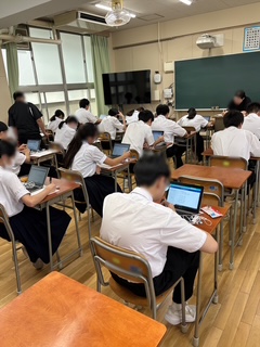 分からない時は、先生に教えてもらいながら、生徒が主体的に取り組みました。2年生は、明日実施します。