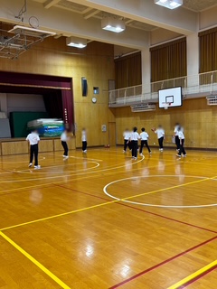 最近の暑さ対策を踏まえて、昼休みに体育館を開放しています。スペースの関係で、学年ごとに曜日を決めて利用しています。今日は2年生がバスケットボールをしていました。