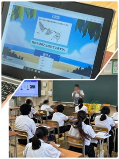 ガスバーナーの使い方を学習しました。最後に、期末テストへ向けて、タブレットを用いてクイズ形式の問題を解いて復習しました。ゲーム形式なのでみんなとても集中していました。