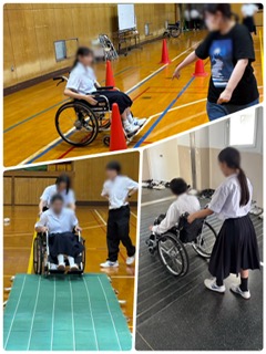 お話しを聞き、実際に車椅子の体験をして、相手の立場に立って考えことの大切さ、コミュニケーションをとることの大切さを学びました。