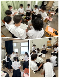 9月に開催する合唱コンクールへ向けて動き出しています。各クラスで曲を決め、ピアノ担当はじめ、パートに分かれて練習中です。CDで音を聞きながら、素晴らしいハーモニーを奏でようと取り組んでいます。