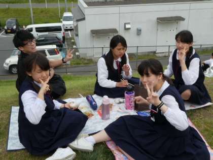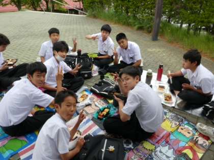 12:30 梓川SA 昼食の様子です。天気はまだ持っているようです。