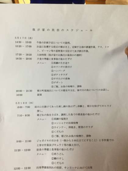 あるご家庭の民泊スケジュールです。