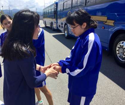 民泊体験を終えて、別れを惜しみながら、次の活動場所の黒部川へ向かっています。民泊体験で素晴らしい経験をさせて頂きました。