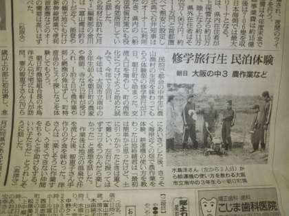 先日の3年修学旅行の取り組みが、地元富山県の北日本新聞と
