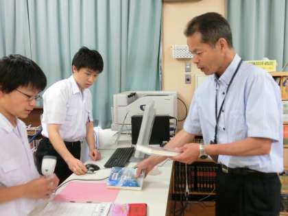 また毎日の業務は図書室の管理運営と貸出返却の手続きです。先生達も借りに来られます。南中の図書室はたいへん蔵書が豊かです。「え?!こんな本もあるの!」と驚くようなものもあります。皆さんも一度覗いてみてください。