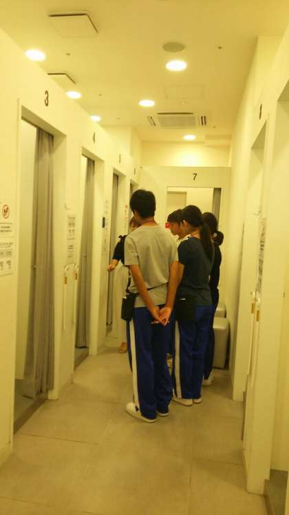 GU心斎橋店です。フィッティングルーム(試着室)でのお客様への対応の仕方を教えていただいています。