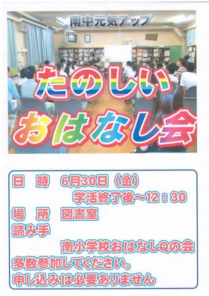 6月30日(金)のテスト終了後,南小学校おはなしQの会の