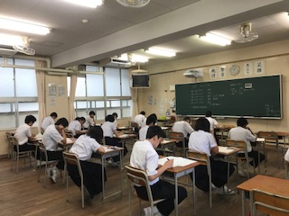 生徒たちは一生懸命に取り組んでいます。(写真は数学の様子)