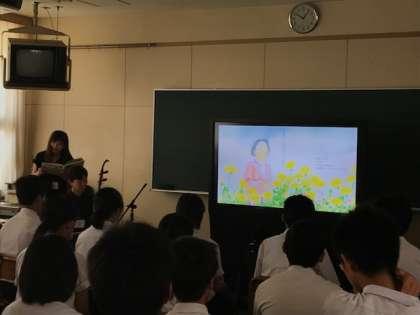 おはなしQの会の方にお越しいただき、戦争に関係する絵本の読み聞かせをしていただきました。