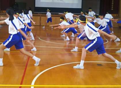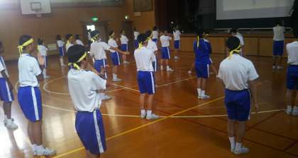 三年生は体育大会の学年種目で南中ソーラン節を踊ることになりました。1学期からソーラン委員を中心とした取り組みが始まっています。今日の体育の授業では、ソーラン委員が取り組みの経過やテーマについて全体に説明があり、みんなでがんばろうと意気込みを新たにしました。かなり足腰を使い、また早いテンポに失敗の連続ですが、笑顔の絶えない授業となりました。