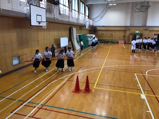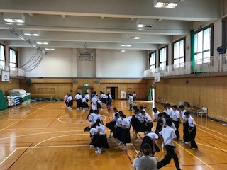 1年生の学年種目練習1回目。競技の名前を今みんなで考えています。楽しみですね。