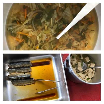 さんまのさんしょう焼き、すまし汁、高野どうふの煮物