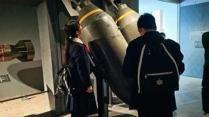 2年生は、ずっと平和学習に真剣に取り組んできました。今日はその中でも一番大きな取り組みともいえる、フィールドワークです。天候にも恵まれ、子ども達はとても熱心に学習に取り組んでいます。ピース大阪の様子をお伝えします。